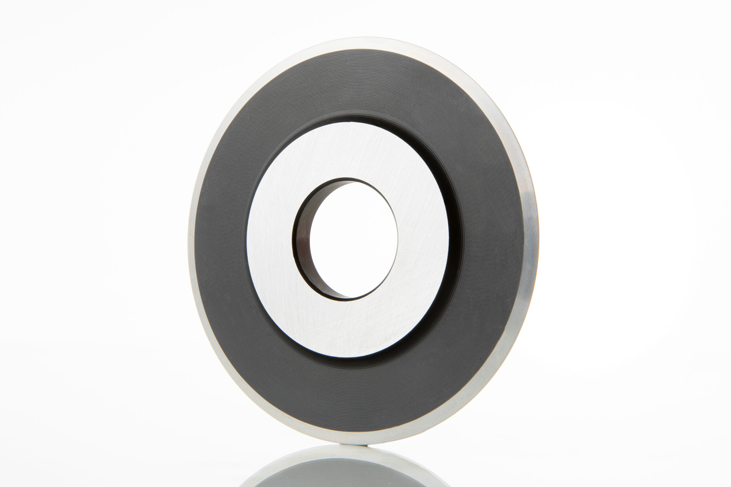 Cameron Score Cutter Blade in WS tool steel with 45 degree angle and 0.005″ radius 3.000″OD x 0.8661″ ID x 0.2435″ Thickness.